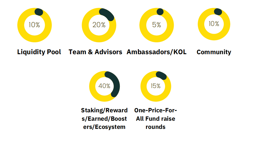 在代币分配比例上,40% 的份额将直接面向公售,团队与顾问占 20%,质押及生态系统奖励占 15%,社区分配 10%,流动性池 10%,而 KOL 及大使仅占 5% 。